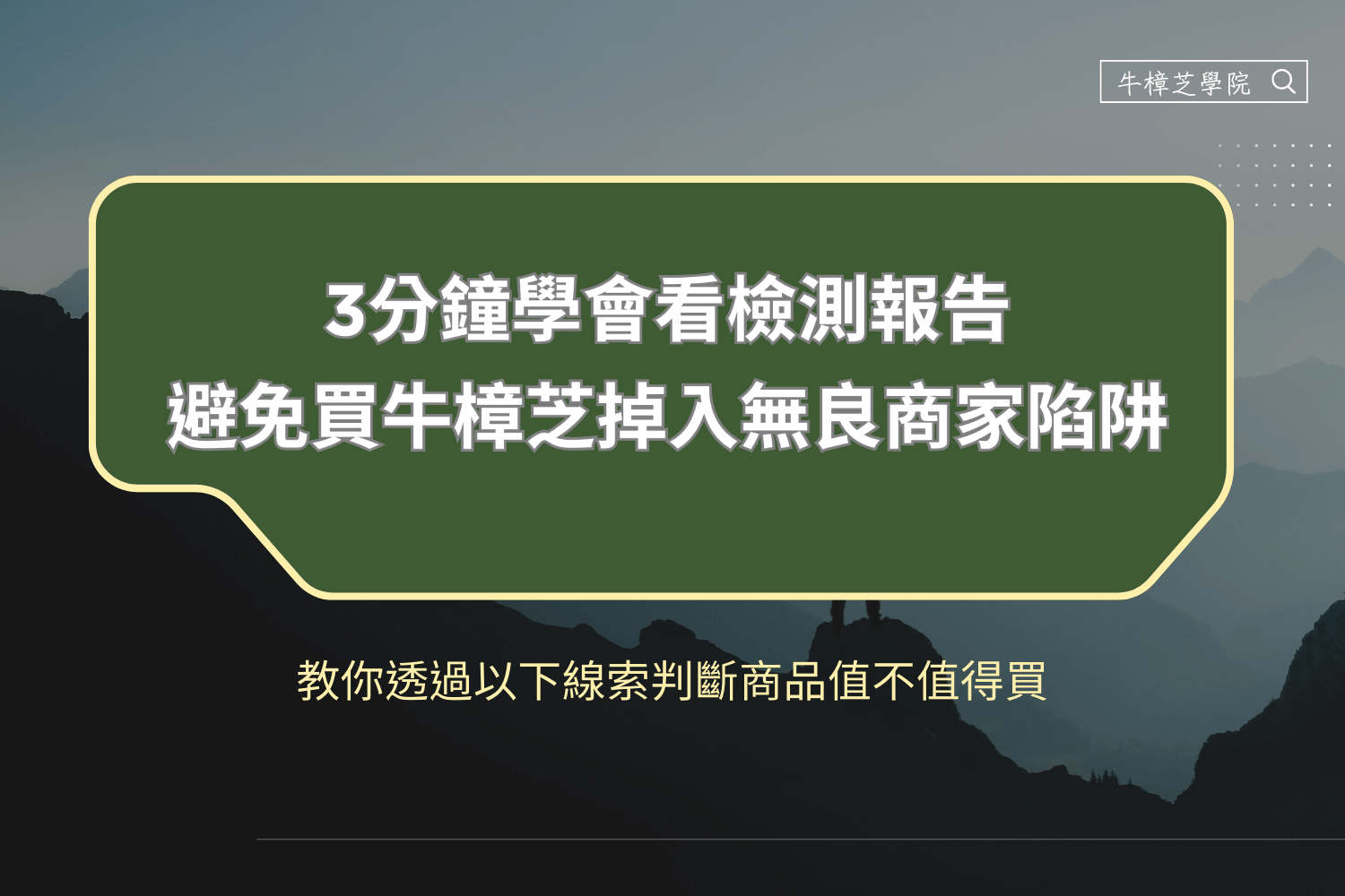 購買牛樟芝時,是否曾看過不但有極高三萜值、價格又十分便宜的「高CP值牛樟芝產品」,讓人覺得不買可惜?但您知道該如何判斷廠商是否有將三萜檢測報告「移花接木」嗎?商家意圖讓你誤以為你買的產品品質如報告中那麼好,實則不然,本篇教你用3分鐘簡易判斷產品值不值得購買。